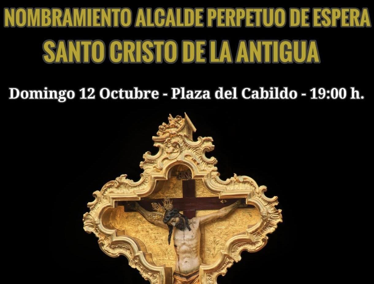 El próximo domingo 12 de octubre, tendrá lugar el acto oficial de nombramiento de Alcalde Perpetuo de Espera al Santo Cristo de la Antigua.