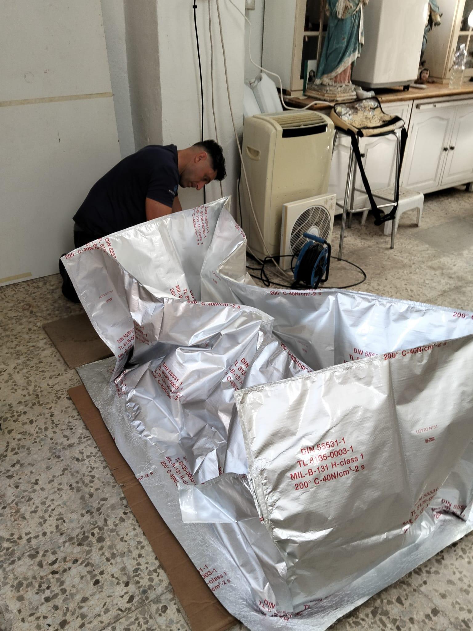 Nuestros amigos de la empresa ANTICIMEX, especializada en tratamientos de control de plagas de Arte Sacro, acaban de realizar un tratamiento de anoxia a la imagen de San Benito Abad, Patrón de la sevillana localidad de Lebrija.