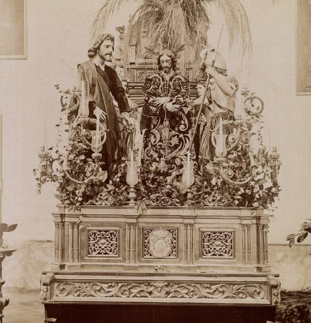 El paso que vemos en estas imágenes, de finales del siglo XIX, fue el primero con el que procesionó la Hermandad de la Sagrada Lanzada el Jueves Santo de 1949. El paso fue realizado inicialmente para la Hermandad de los Panaderos de Sevilla (Prendimiento), que lo vendió a la Coronación de Espinas de Jerez en 1944. La Coronación lo cedió a La Lanzada durante dos años.