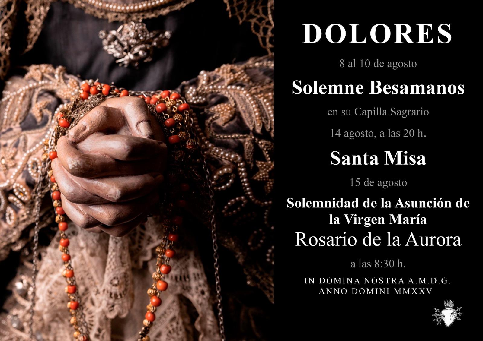 Ademas, en la mañana del 15 de agosto, la imagen fundacional de la Orden, venerada en su hornacina de la calle Sagasta, saldrá en Rosario de la Aurora por las calles de la feligresía a partir de las 8:30 horas, en el que se irá rezando la Corona Dolorosa, ejercicio de piedad propio de la Orden de los Siervos de María.