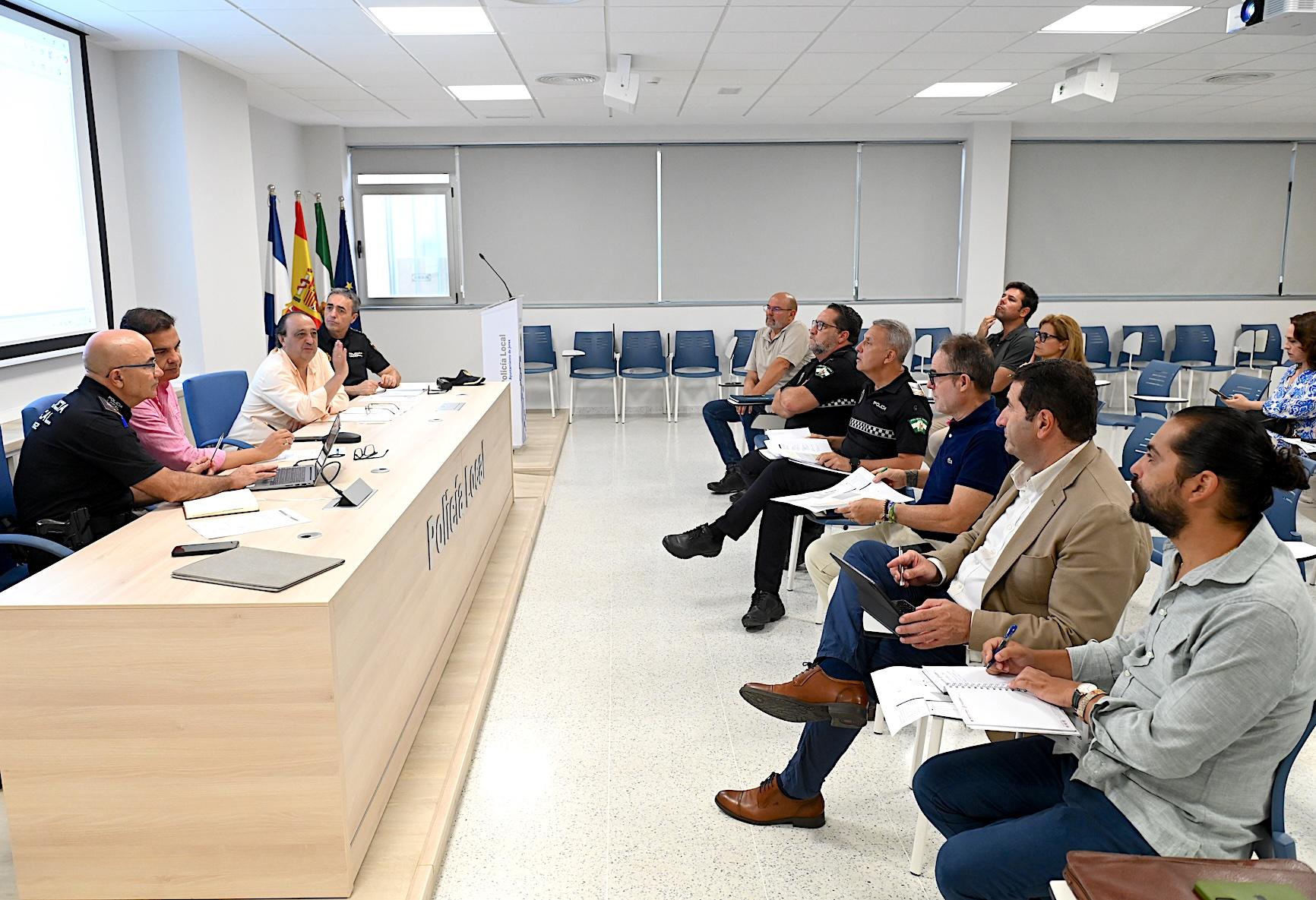 Con vistas a coordinar los distintos dispositivos de las áreas municipales implicadas con Policía Local y Policía Nacional, se ha celebrado una reunión en la Jefatura de la Policía Local con la presencia del teniente de alcaldesa de Seguridad, José Ignacio Martínez, y el delegado de Cultura y Fiestas, Francisco Zurita, en la que se han abordado los horarios de montaje y desmontaje de escenarios, inicio de los servicios de limpieza previos y posteriores a tales eventos y diversas cuestiones sobre cortes de tráfico y sus horarios en las calles del entorno de la plaza de la Merced y de Santiago, que se definirán y comunicarán en próximos días tras las propuestas de esta reunión.