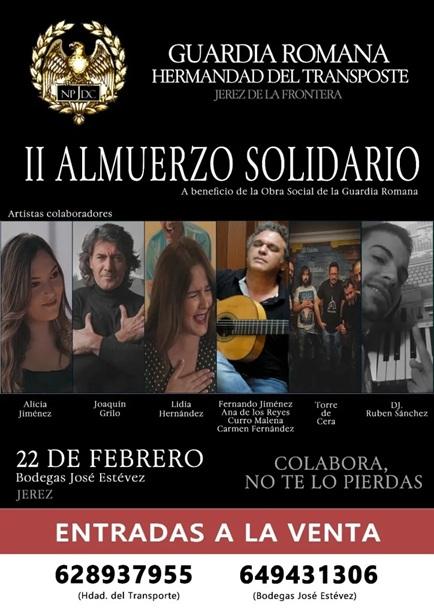 Volvemos a recordar que será el próximo sábado día 22 de febrero, cuando tenga lugar el almuerzo solidario de la Guardia Romana de Nuestro Padre Jesús del Consuelo, en la jerezana Bodega José Estévez.