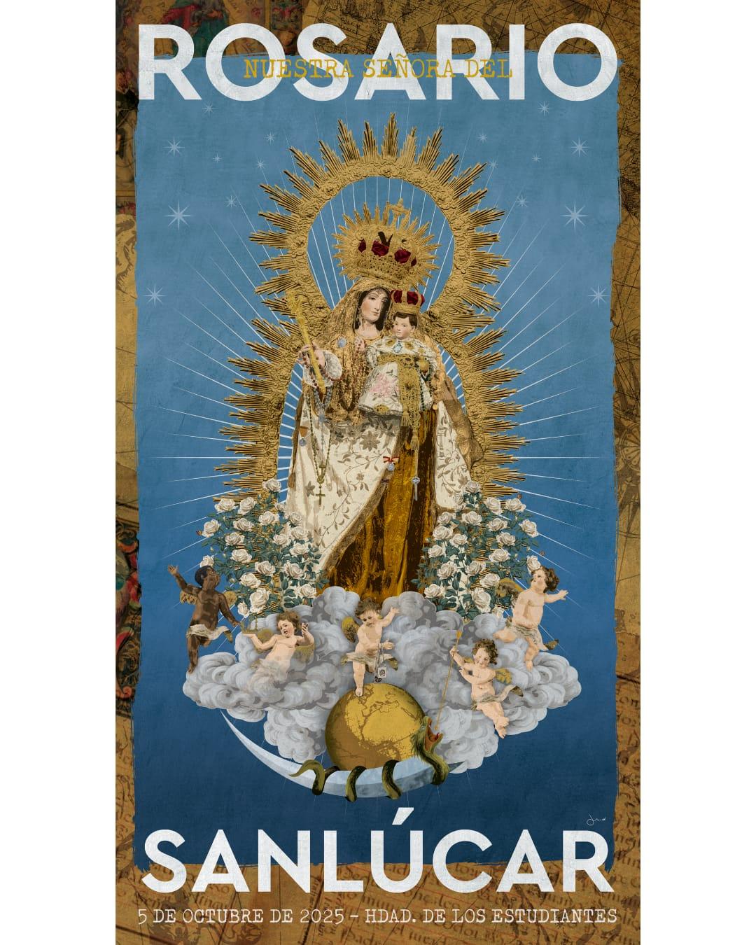 Nuestro compañero Jaime Sánchez, firma el cartel de la salida procesional de Nuestra Señora del Rosario de Sanlúcar de Barrameda, popularmente conocida como “La Galeona”, titular gloriosa de la Hermandad de los Estudiantes.