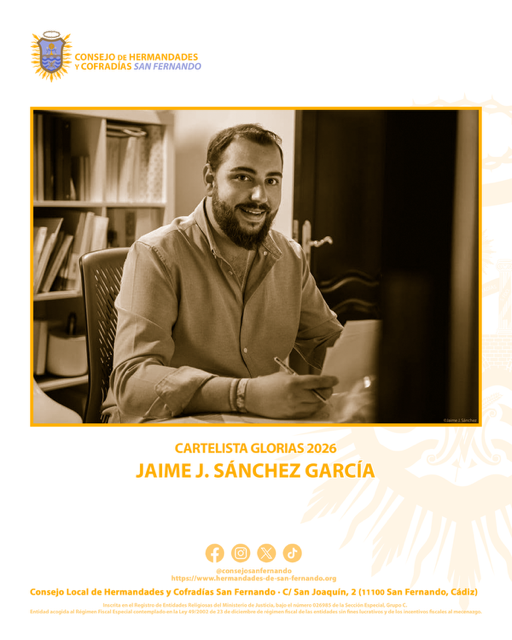 En este sentido, se comunica que el encargado de pregonar el tiempo de Glorias del próximo año será el cofrade isleño Moisés Posada López, mientras que el cartel oficial de las Glorias 2026 será obra del cartelista e ilustrador digital jerezano Jaime J. Sánchez García.