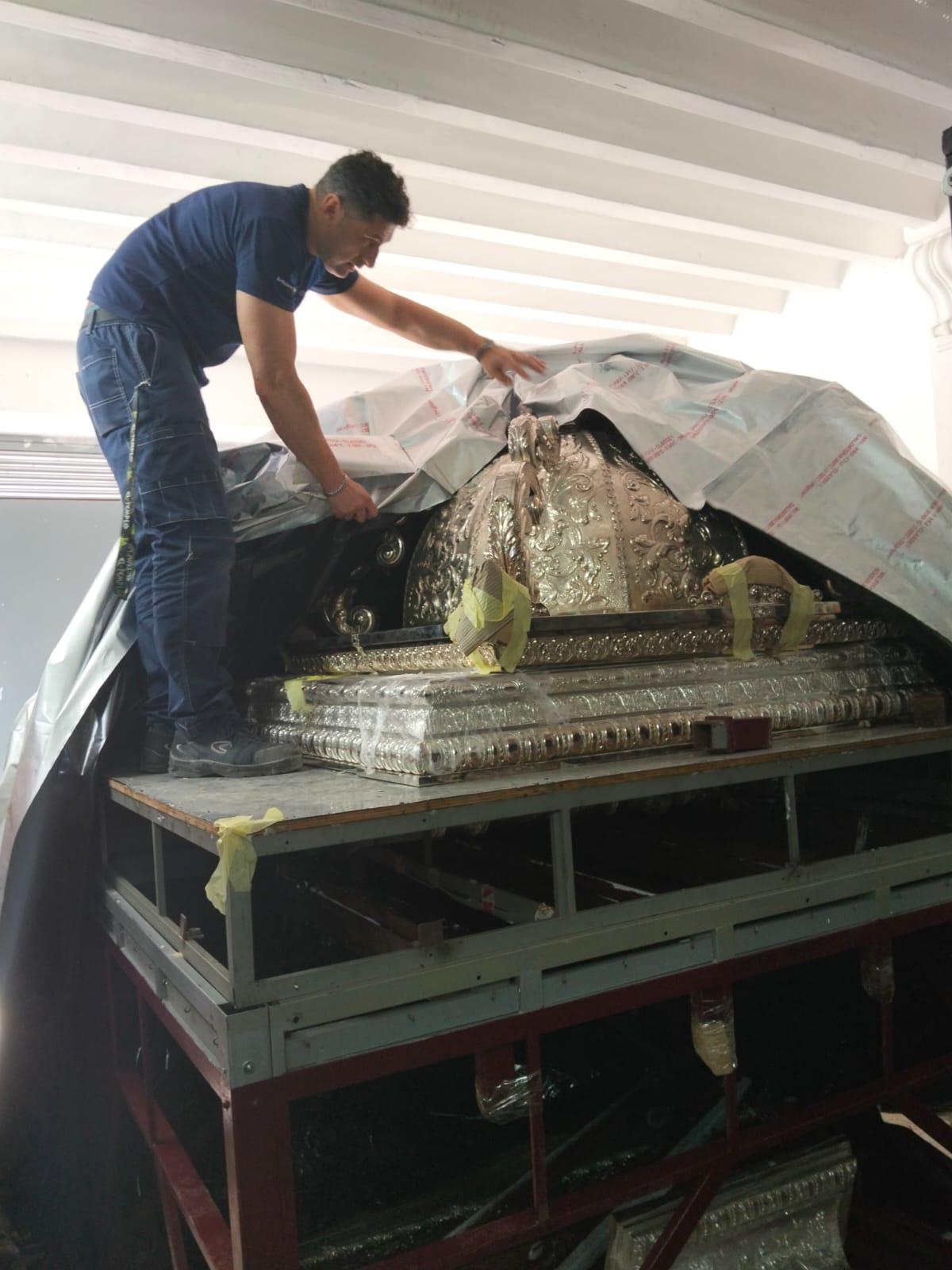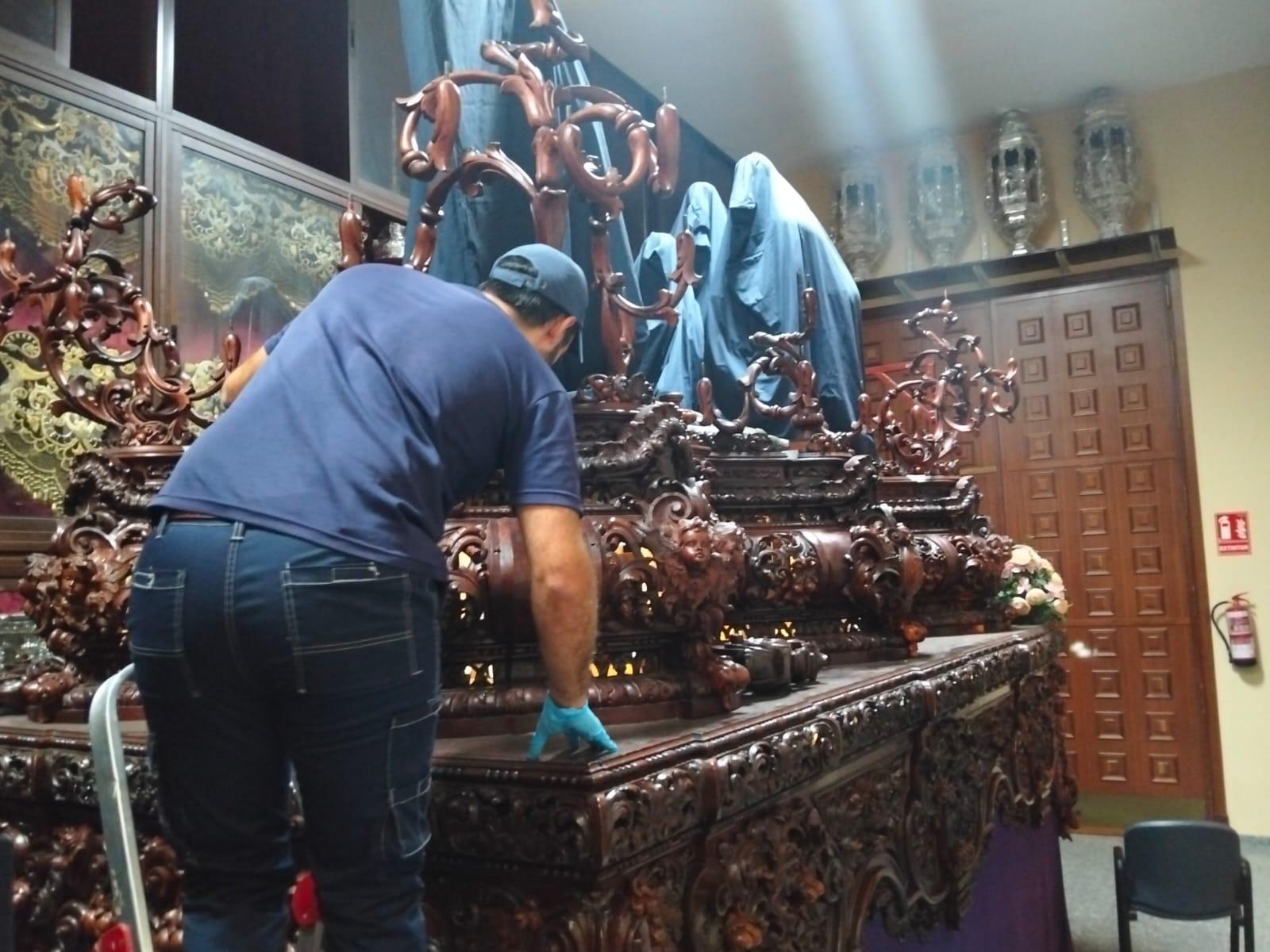 Pues bien, la jerezana Hermandad de la Candelaria es una de las que ha decidido invertir en la protección de su patrimonio, cofradía en la que ANTICIMEX está realizando un tratamiento antixilofagos en el paso del Corpus, así como en el paso de misterio del Señor de las Misericordias.