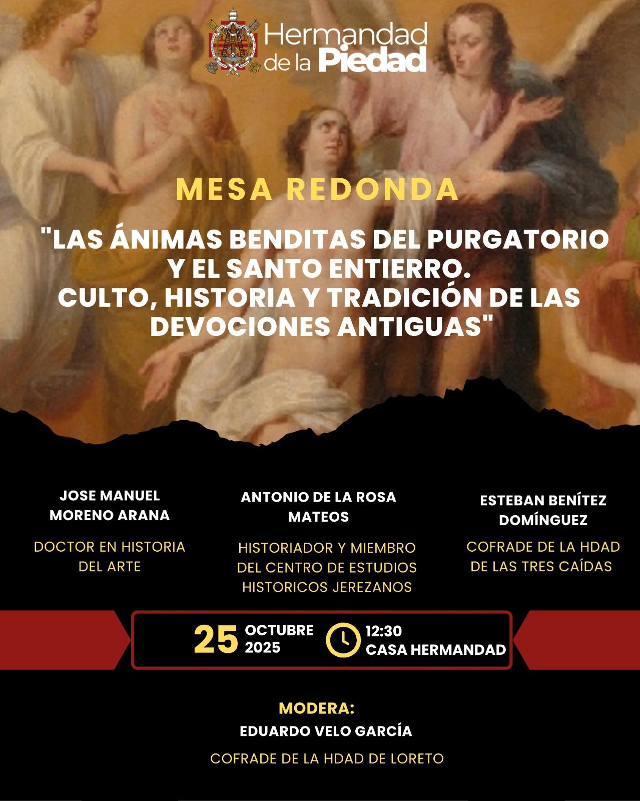 La Hermandad de la Piedad ha organizado para este próximo sábado, día 25 de octubre, desde las 12:30 horas, una muy interesante mesa redonda que se llevará a cabo en su casa de hermandad.