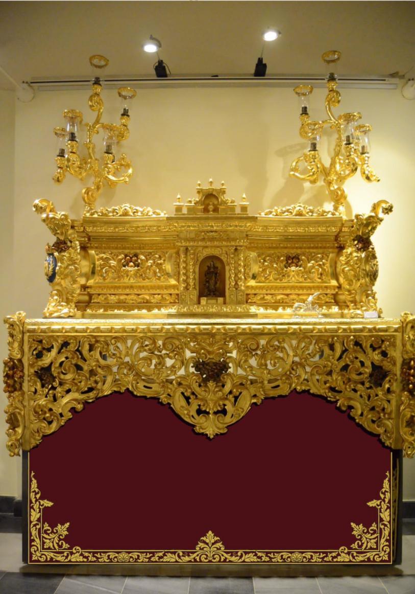 Este proyecto surge de la necesidad de adecuar los faldones a las nuevas dimensiones del paso, que será disminuido en su anchura, lo que también obligará a la realización de una nueva mesa, así como a la modificación del canasto y de los respiraderos, ejecuciones ya en marcha, en el taller onubense de Daniel Sánchez Vázquez, quien además está llevando a cabo un proceso de restauración y mejora general.