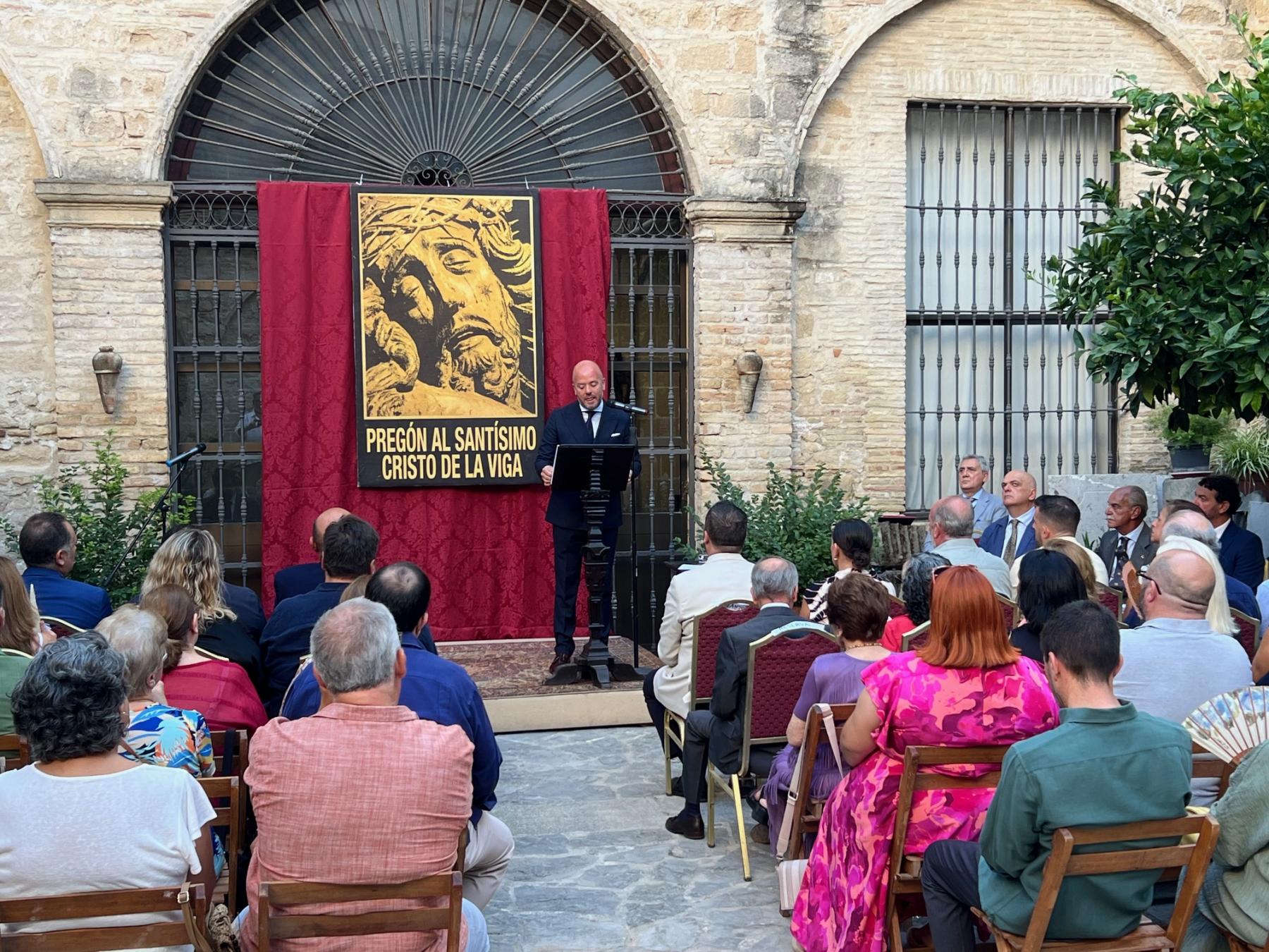 Aquí os dejamos el sonido íntegro del Pregón al Cristo de la Viga que el pasado viernes día 1 de agosto ofreció Pablo Baena, como antiguamente ocurría, en el Patio de los Naranjos de la Catedral de Jerez.