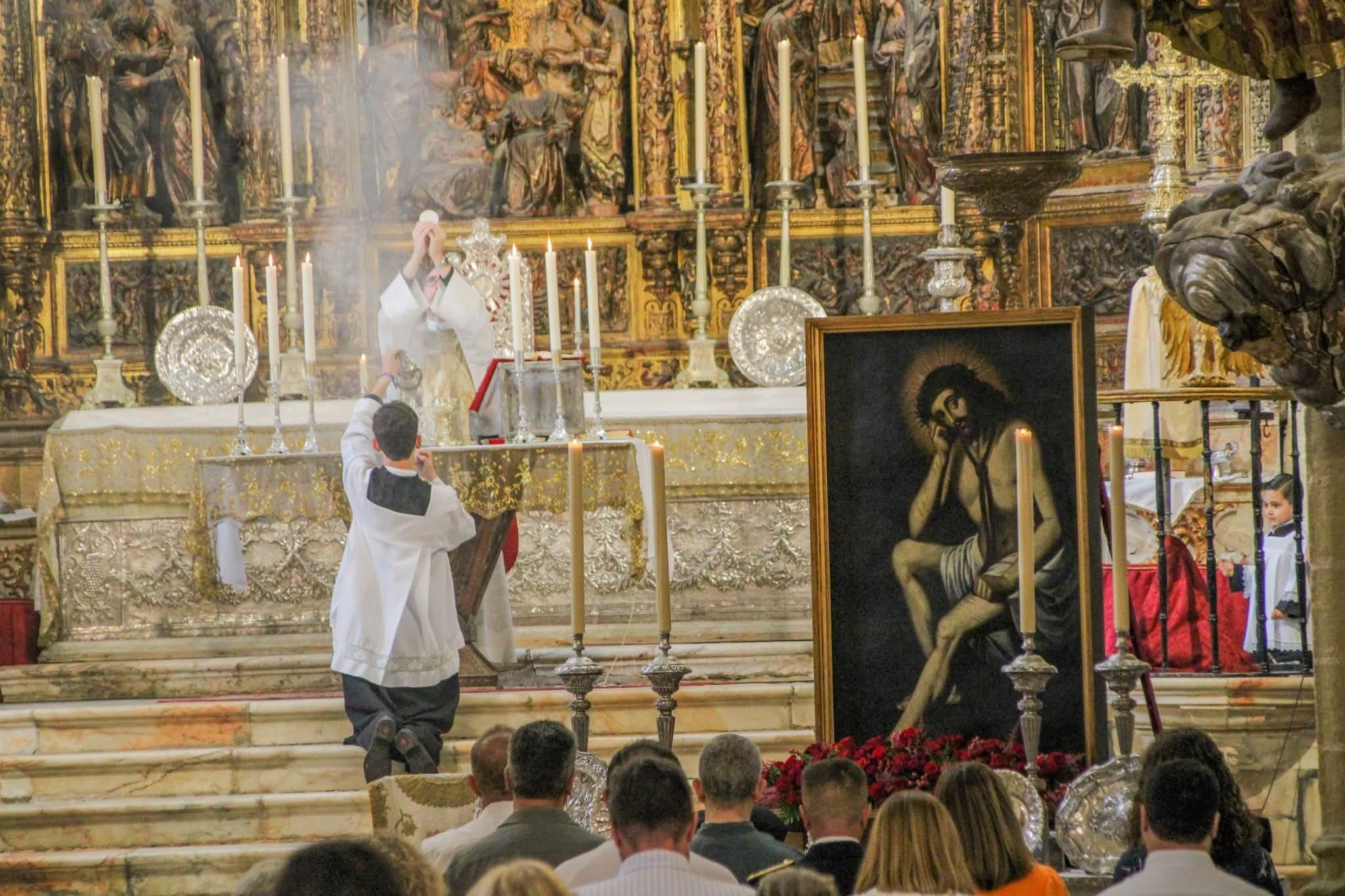 Tras la ceremonia religiosa en la Iglesia Mayor, la restauradora dio una conferencia sobre el proceso seguido, sumamente meritorio por el estado en que se encontraba el cuadro, para posteriormente ser conducirlo en procesión a la capilla de la Residencia de ancianos 'El Amor de Dios'.